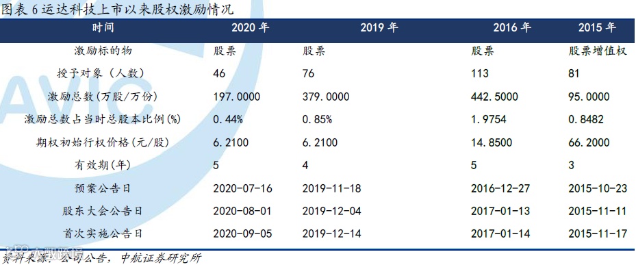 股权激励:上市以来,公司实施多次股权激励计划。2020年11月17日,公司完成了2020年限制性股票激励计划(草案)中限制性股票的首次授予登记工作,计划首次授予激励对象46名,授予限制性股票数量为197万股,占公司目前股本总额的0.44%。本激励计划首次授予的限制性股票解除限售期的相应考核年度为2020-2022年三个会计年度,三个解除限售其对应的业绩考核指标为以2019年净利润为基数,2020年、2021年和2022年的净利润增长率不低于10%、20%和30%。公司持续性的股权激励是营业收入和净利润逐年增长的有力支持。