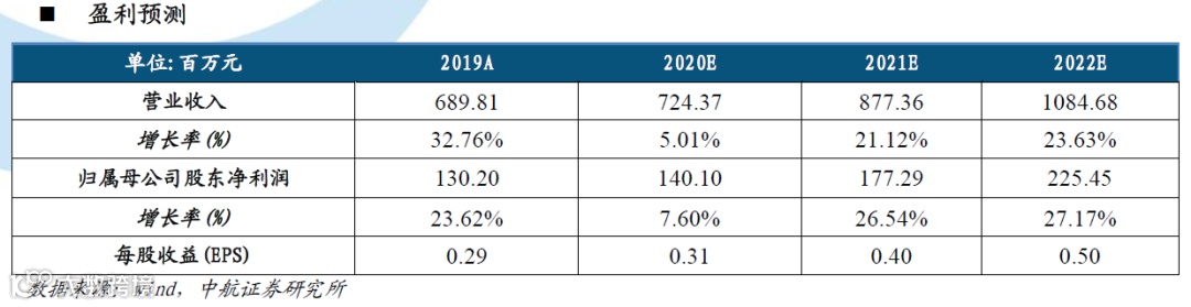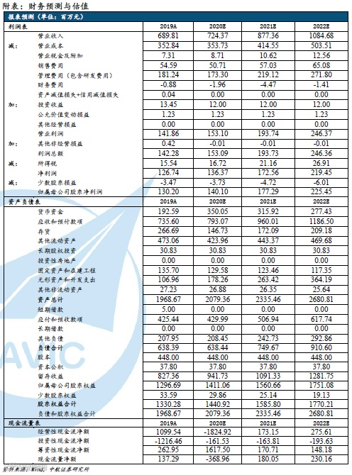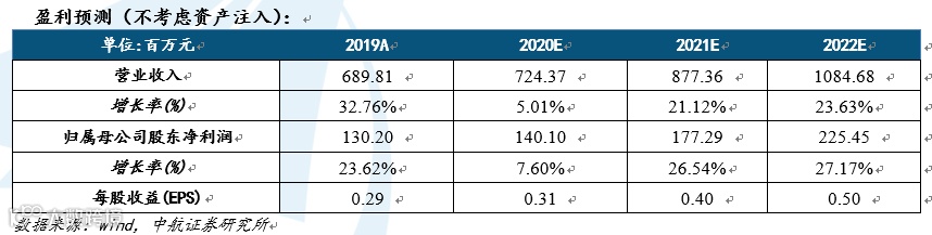 在考虑资产注入的情况下:结合标的公司的业绩承诺和我们前述关于公司不考虑资产注入时的业绩预测,公司2020-2022年营业收入分别为8.61亿元、10.42亿元和12.81亿元,归母净利分别为1.90亿元、2.38亿元和2.94亿元。本次发行股份购买资产的股票发行价格为9.48元/股,共发行39,031,637股。本次拟募集配套资金不超过2.9亿元,则在募集配套资金发行股份的发行价格同样为9.48元/股的情况下,募集配套资金新发行股份四舍五入后为30,590,717股,本次发行股份及支付现金并募集配套资金结束后,公司股本为517,622,354股,结合预计的历年归母净利,则公司2020-2022年EPS分别为0.37、0.46和0.57元。