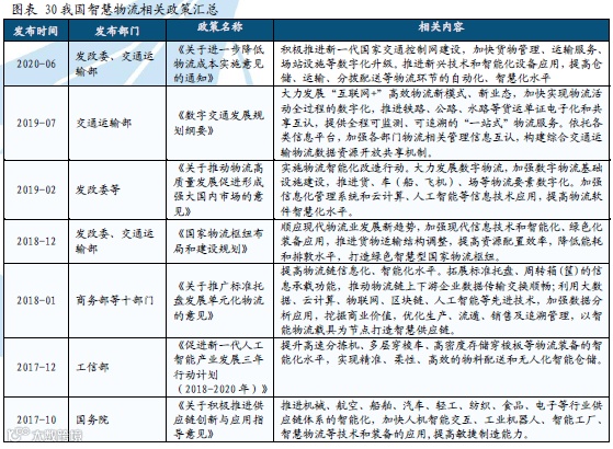 按照《中长期铁路网规划》中的远期展望,到2030年基本实现内外互联互通、区际多路畅通、省会高铁连通、地市快速通达、县域基本覆盖,将形成国内最大物流网络。中央经济工作会议将“5G、人工智能、工业互联网、物联网”定义为“新型基础设施建设”,并且提出“加大城际交通、物流、市政基础设施等投资力度”,《国家物流枢纽布局和建设规划》提出以127个城市作为国家物流枢纽承载城市建设现代化物流运行体系,预计未来铁路智慧物流将加速前进。