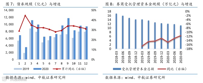 本周,市场风险偏好较高,周日均成交额环比增加34.02%,北上资金单周流入197亿元,A股市场上涨势头强劲,带动券商板块上涨。私募新规等一系列管理办法的出台有助于提升券商服务实体经济的能力,引导相关行业回归本源,政策红利预计会继续利好券商业绩增长,行业监管趋严趋紧,有利于提升券商可转债等业务质量,提升投资者信心,对行业整体发展起到积极带动作用。
