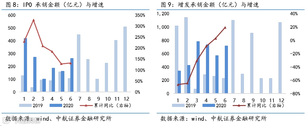 投行:7月股权融资429亿元,其中首发、增发融资分别为68亿元、279亿元;今年前6月,首发、增发融资累计同比分别+130.86%、+19.28%,券商累计主承债券规模同比+29.28%。