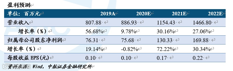 由于疫情带来的不确定性,我们将公司2020-2022年的营业收入小幅调整为8.87亿元、11.54亿元和14.67亿元,增速分别为9.78%、30.16%、27.06%,将归母净利润调整为0.76亿元、1.3亿元和1.7亿元,增速分别为-0.82%、72.22%、30.34%,EPS分别为0.1元、0.17元和0.22元,对应PE为168倍、98倍、75倍,给予公司“持有”评级。