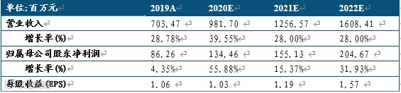 我们认为Video First时代来临,公司主营的视频编辑、音视频转换、视频资源等是视频产业链中重要的生产力工具,可以享受到短视频市场快速发展带来的红利。公司90%以上的营收来自于海外市场,随着国内软件正版化、用户付费模式的持续推广,上半年国内市场收入同比增长254%;未来其国内市场营收快速增长确定性较强,区域营收结构可能更加均衡。预测公司2020、2021、2022年归母净利润分别为1.34亿元、1.55亿元、2.05亿元,对应EPS分别为1.03元、1.19元、1.57元,当前股价对应PE分别为67.98倍、58.84倍和44.60倍,参考同行业上市公司,给予公司2020年85倍PE估值,对应股价87.55元,给予“买入”评级。
