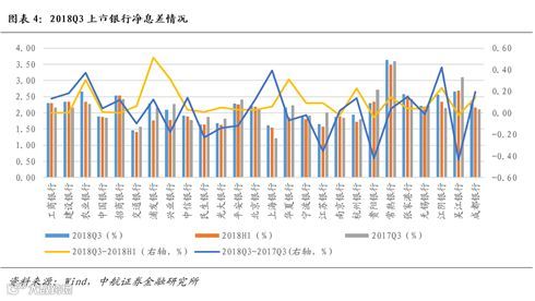 个股方面,三季度共16家银行营收增速较二季度环比改善,10家银行环比下降,环比提升幅度最大的是江阴银行(+24.25%),环比降幅最大的是张家港行(-20.97%)。具体来看,大多数上市银行利息净收入均保持了同比正增,只有4家银行利息净收入出现了同比负增长,均为股份行和城商行,其中同比增幅最大的是上海银行,Q3单季同比大增65.60%,同比下降幅度最大的是江苏银行,同比下降了11.28%;受资管新规的影响,手续费及佣金净收入同比减少的上市银行数量较多,共有14家,其中同比增幅最大的是吴江银行(+97.30%),同比减少幅度最大的是张家港行(-84.86%)。