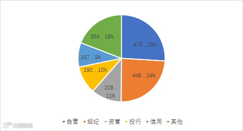 自营收入占比第一,资管仍是唯一收入逆势增长的细分业务。从各业务条线收入占比看,如图1所示,自营收入476亿元,收入占比26%,是第一营收来源,其次依次为经纪(24%)、资管(11%)、投行(10%)和信用(9%)。从各自增速看,较之中报,五大细分业务除自营收入增速下滑幅度略有收窄外,其余四大细分业务经纪、投行、资管、信用业务收入增速均不同程度下滑,其中信用业务收入下滑最大,同比-32.66%,资管仍是唯一收入保持正增长的细分业务,同比+5.33%。