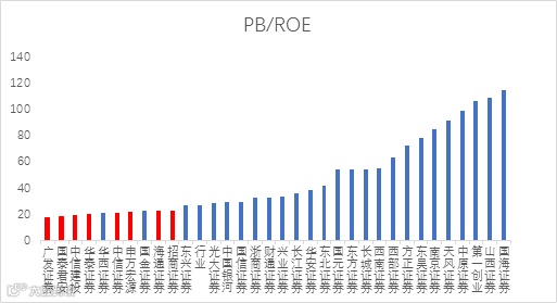 图5:从PB/ROE估值角度看,大券商股价相对中小券商更“便宜”