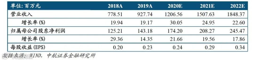 基于以上观点,我们预计公司2020-2022年的营业收入分别为12.07亿元、15.08亿元和18.48亿元,归母净利润分别为1.74亿元、2.08亿元、2.45亿元,EPS分别为0.24元、0.29元、0.34元,当前股价分别对应54倍、45倍及38倍PE。