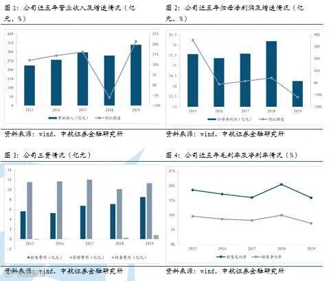 Ø 事件:公司4月25日发布2019年报,2019年实现营收339.04亿元(+21.35%),归母净利润14.25亿元(-11.93%),扣非归母净利润8.78亿元,(-44.94%);毛利率15.86%(-4.56pcts),净利率7.12%(-2.80pcts)。