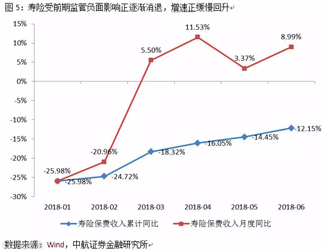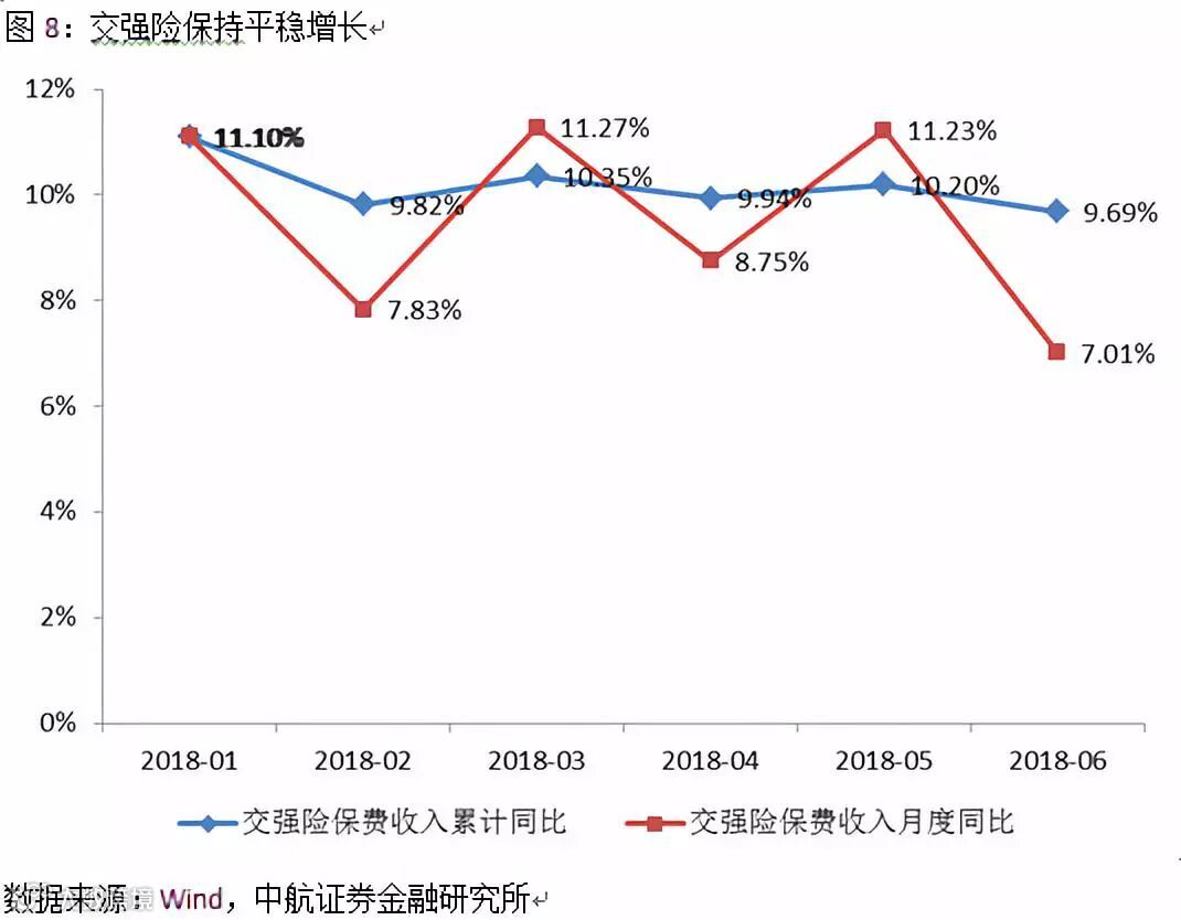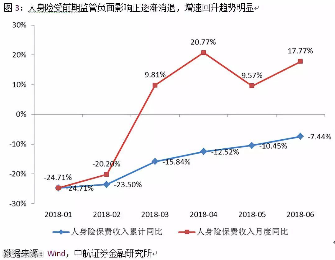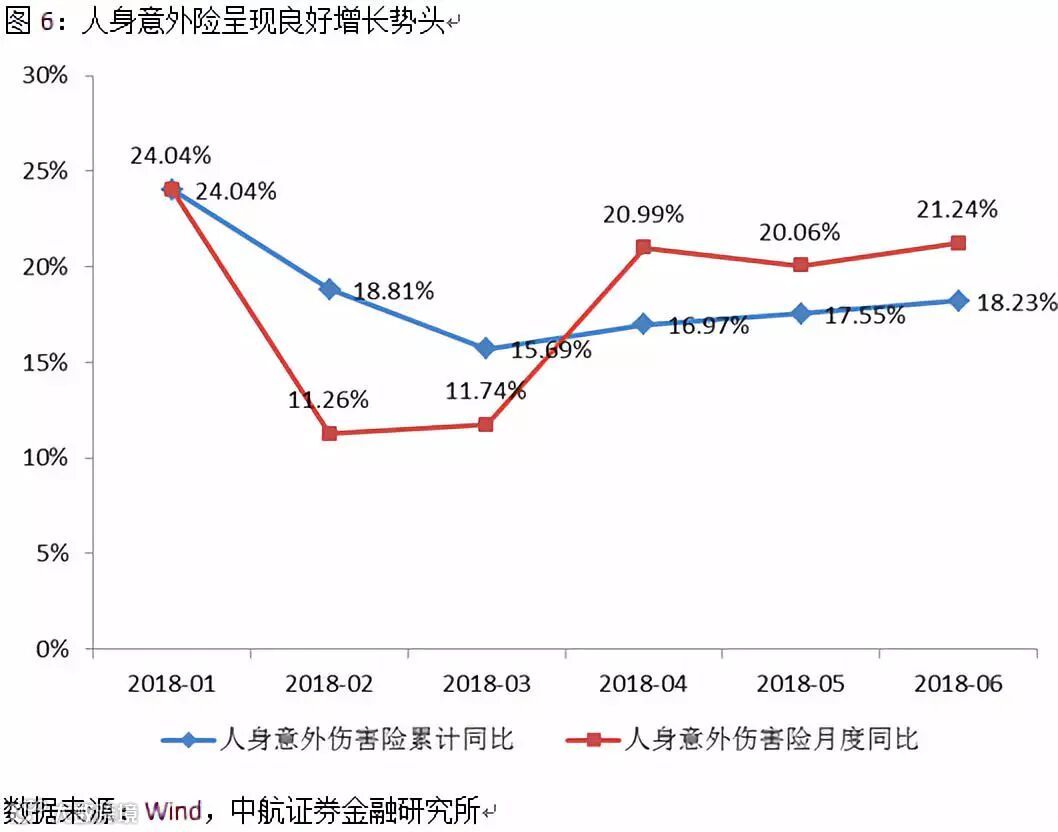 近日,银保监会发布2018年1-6月保险行业统计数据报告。2018年1-6月保险行业累计实现原保费收入22369亿元,同比-3.33%,同比降幅较上月继续收窄。其中人身险保费累计收入16928亿元,同比-7.44%,财产险保费收入5442亿元,同比+12.15%。人身险中,寿险保费收入13361亿元,同比-12.15%,人身意外伤害险保费收入547亿元,同比+18.23%,健康险保费收入3019亿元,同比+15.44%;财产险中,交强险保费收入972亿元,同比+9.69%,农业险保费收入368亿元,同比+27.91%。