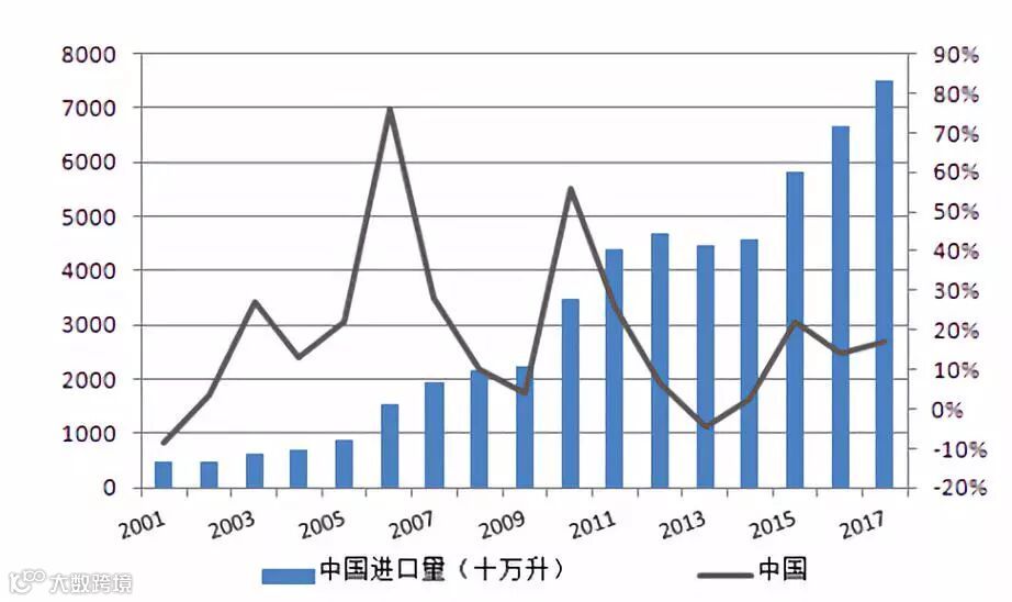 图2:中国葡萄酒进口呈现持续增长