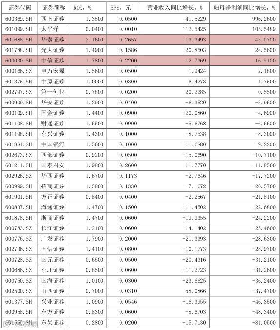 虽然证券行业整体承压,但是行业龙头证券公司依然凭借较强的经营能力实现较好的业绩增长,在股价表现上也得到市场的支持。