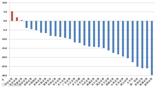 图表7:上市券商涨跌幅表现(20180101-20180525)