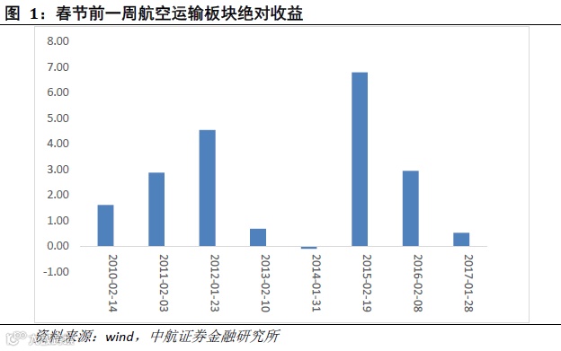 2018年春节对应公历月份相对较晚,学生节前释放效应明显,预计节后学生返校与务工返乡叠加形成充足需求。另外,根据以往历史数据,2015年、2016年、2017年节前一周航空运输板块均实现上涨(涨幅分别为6.79%、2.95%、0.53%),且春节时间越滞后,获得涨幅越大(2015春节为2月19日,2016年春节为2月8日,2017春节为1月28日),2018春节时间与2015年较为接近,预计务工流、学生流、两会保障叠加效应会继续显现,航司票价及客座率大概率向好。