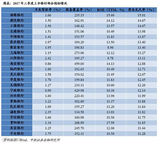 基于此,我们看好以下标的:(1)资产质量较好,拨备计提充裕的高成长性银行:宁波银行(2017Q3不良贷款率0.90%、拨备覆盖429.98%ROE16.38%)、南京银行(2017Q3不良贷款率0.86%、拨备覆盖率459.00%、ROE14.13%);(2)风险管理能力较强、资本充足率较高的国有银行:工商银行(2017Q3资本充足率14.67%)、建设银行(2017Q3资本充足率14.67%)。
