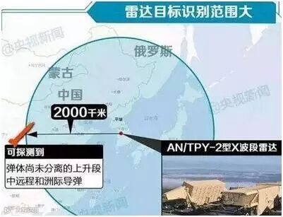 图2:韩部署萨德系统雷达可识别范围