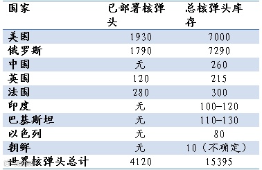 图表4:世界主要国家核库存情况(截至2016年1月)
