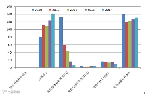 图3:中国退耕还林工程实施效率并不理想(亿元)