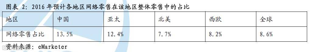同时,伴随着中国新兴消费力量的崛起以及可支配收入的不断增加,相对北美、西欧两大发达地区不足5%的低增长率,中国的零售行业增速虽在下滑过程当中,当仍保持在相对较高的水平。加上在经济发展、消费者需求、政府政策、资本市场等诸多因素的影响下,网络零售市场涌现出多个高速增长的细分市场,如跨境电商、农村电商等正逐渐成为网络零售市场的新增长点。我们应该时刻关注行业转型发展的新趋势和新变化,并跟踪行业内优秀公司在转型方面的举动,发掘出行业新的亮点。