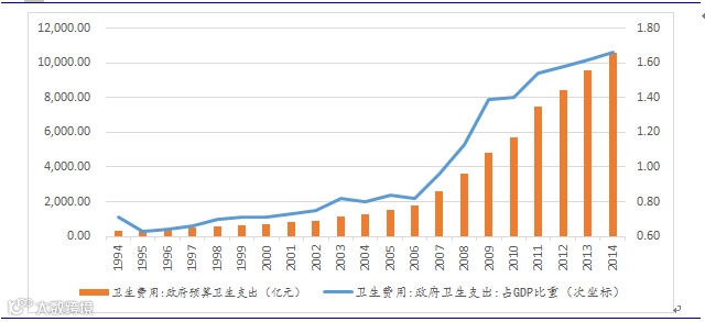 中国医疗服务和医药商业在2015年的快速增长对接了前文提到的看好中国卫生及社保业发展的结论。从基本面的角度分析,除了老生常谈的中国人口老龄化加速、中国人均收入上升和慢性病普遍化之外,中国政府的医疗支出快速增长以及“两票制和公立医院改革”政策是医疗服务和医药商业加速发展的助推器。