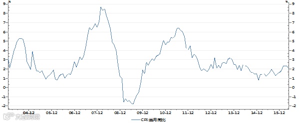 2004年1月至2016年5月中国CPI当月同比