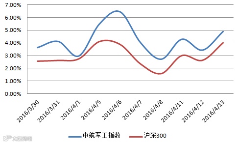 军工指数年度走势及军工指数对比沪深300指数双周涨跌幅