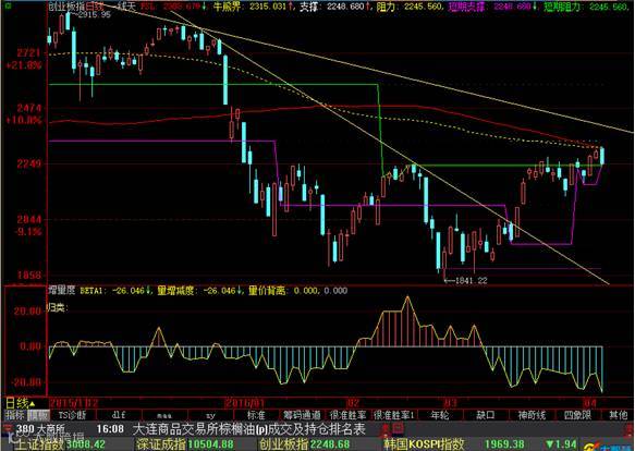 今日创业板和上证指数一样创出了近期新高,2316.63点,而这压力来自FSL指标(2308点)和牛熊界(2315点),今天创业板与上证指数一样收出中阴线,收盘在2248.68点,虽然下方有短期阻力位2245点的支撑,但是增量度指标显示,创业板资金出逃严重,因此中小创股票的调整期已经到来。