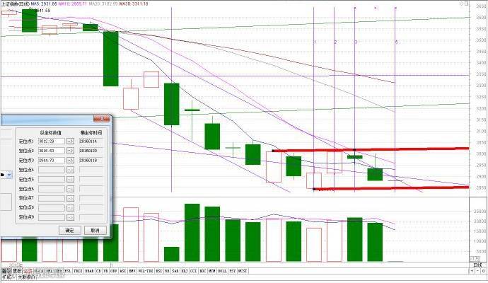 1月21日沪指报收长上影中阴线,量能较上一交易日出现萎缩,技术上观察:目前沪指运行在以1月14日高点(3012.29点)和1月20日高点(3016.28点)连线,以1月18日前期低点(2844.7点)画平行线构成的箱体中,预计短期有再次向下震荡可能,支撑:箱体下轨(2849点)附近,压力:沪指10日均线附近。