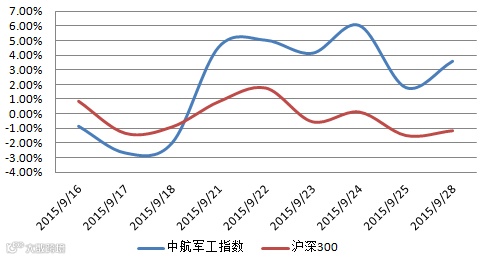 军工指数年度走势及军工指数对比沪深300指数双周涨跌幅