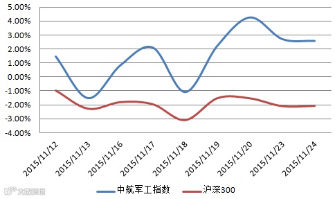 军工指数年度走势及军工指数对比沪深300指数双周涨跌幅