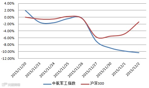 军工指数年度走势及军工指数对比沪深300指数双周涨跌幅