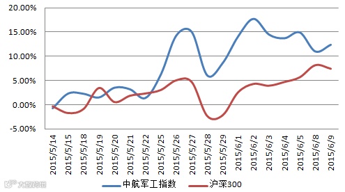 军工指数年度走势及军工指数对比沪深300指数双周涨跌幅