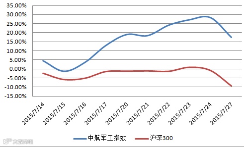 军工指数年度走势及军工指数对比沪深300指数双周涨跌幅