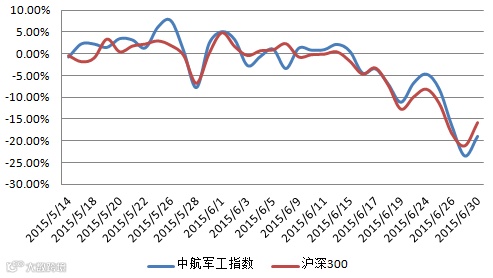 军工指数年度走势及军工指数对比沪深300指数双周涨跌幅
