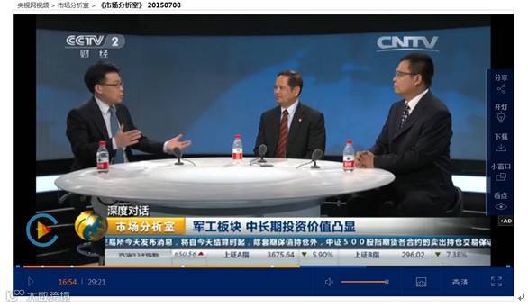 7月8日,作为中国十大军工央企集团唯一证券公司,中航证券积极响应中航工业的号召,大力配合集团上市公司维护公司股价的稳定,第一时间与央视财经频道共同推出《中国制造–国防军工2025》系列节目。