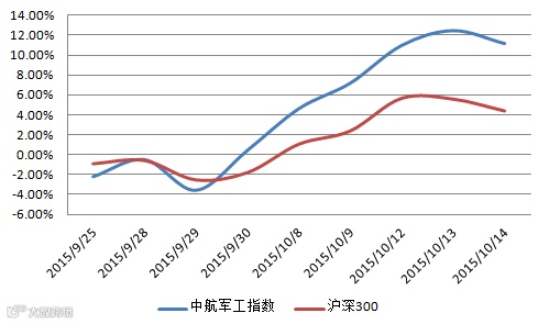军工指数年度走势及军工指数对比沪深300指数双周涨跌幅