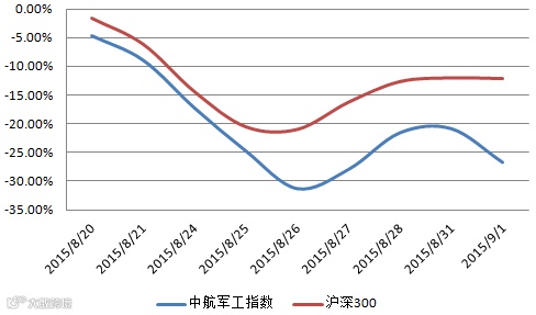 军工指数年度走势及军工指数对比沪深300指数双周涨跌幅