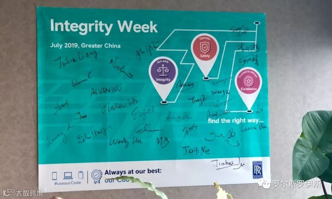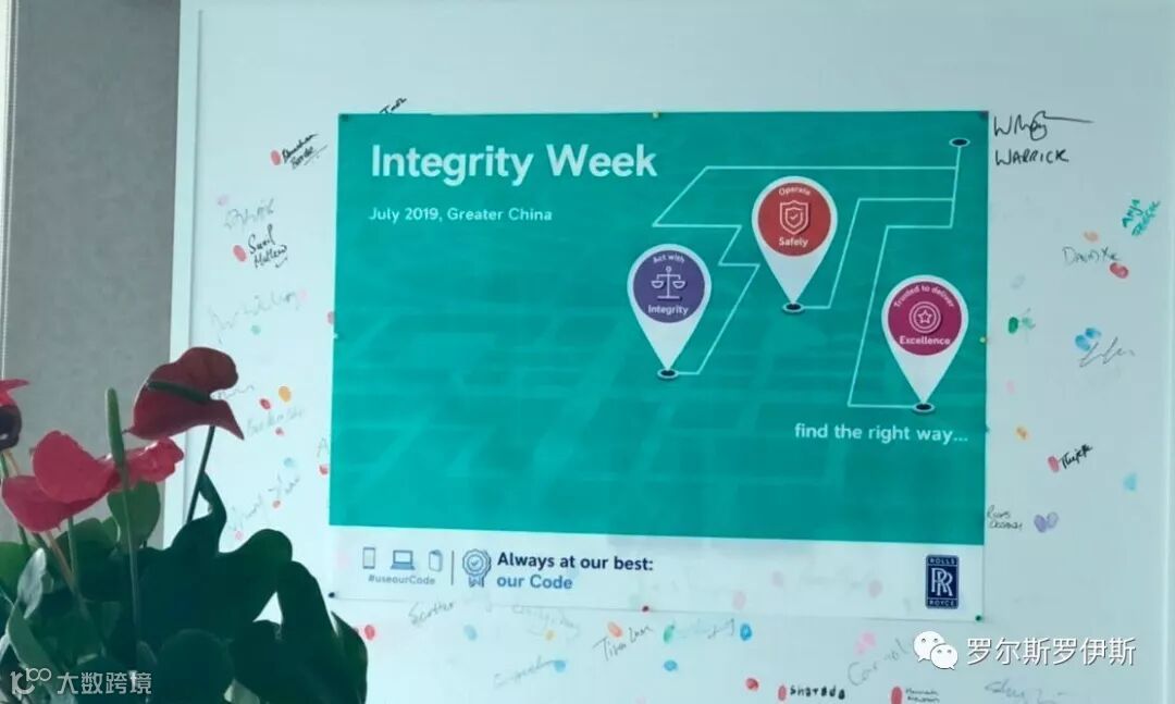 罗罗大中华区首届"Integrity Week"活动于七月一日至五日举行,旨在强化"Integrity"文化,践行罗罗行为规范,将罗罗的核心价值(安全操作,合规守信,精益求精,至诚至信)融入我们的日常工作,激励最大潜能,发挥最佳状态,实现罗罗“引领关键源动力”的愿景。