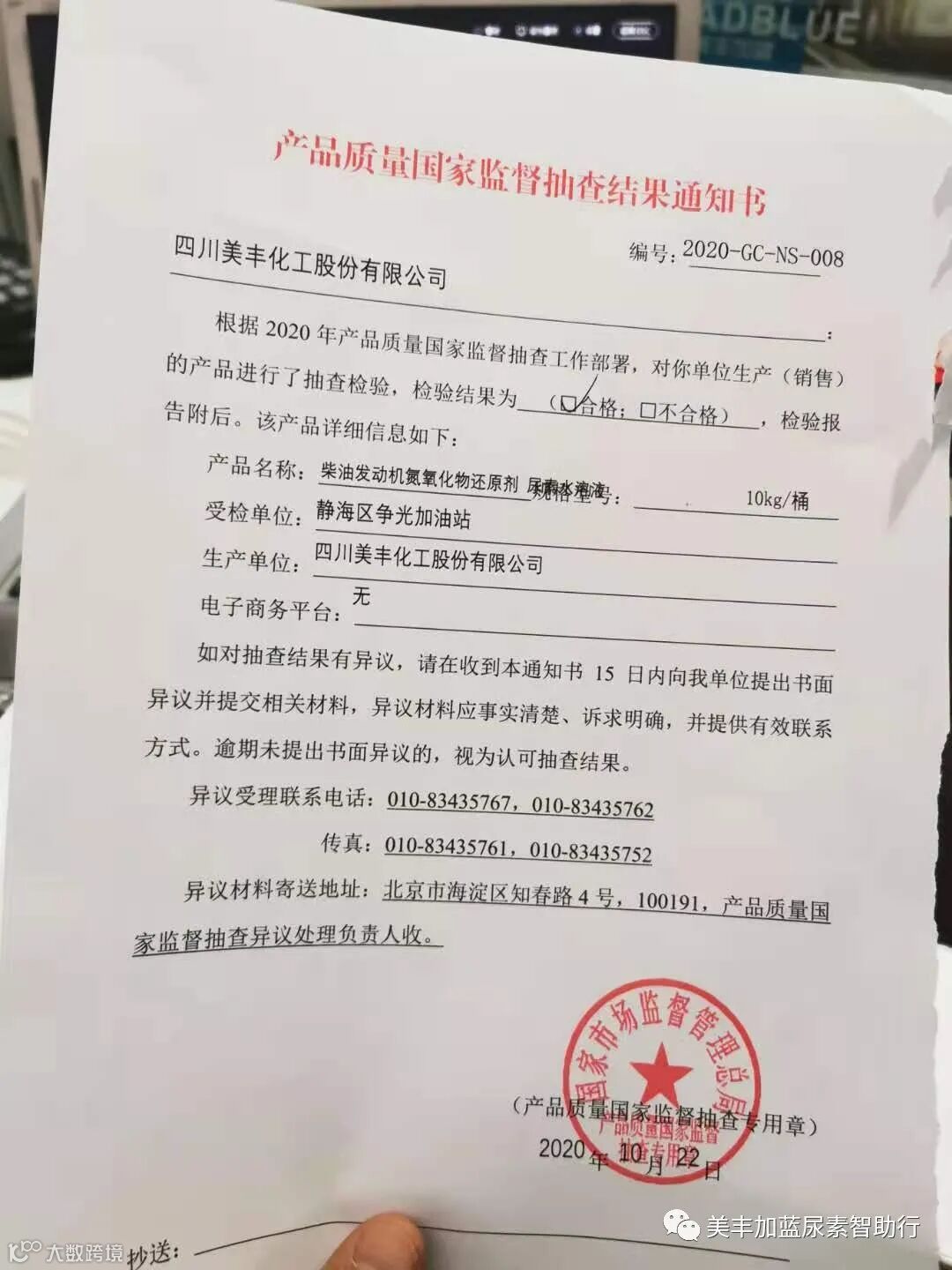 导读:热烈祝贺:美丰尿素在国家市场监督管理总局抽检合格!美丰尿素加注站24小时服务京津冀广大卡友!