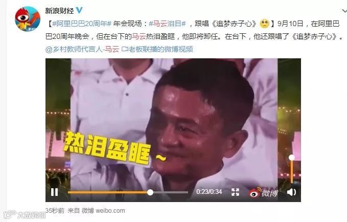 马云跟着唱《追梦赤子之心》时,热泪盈眶