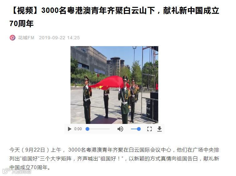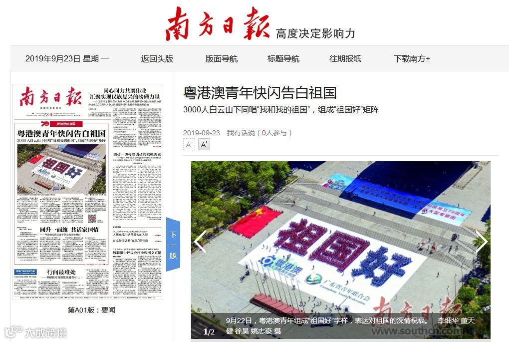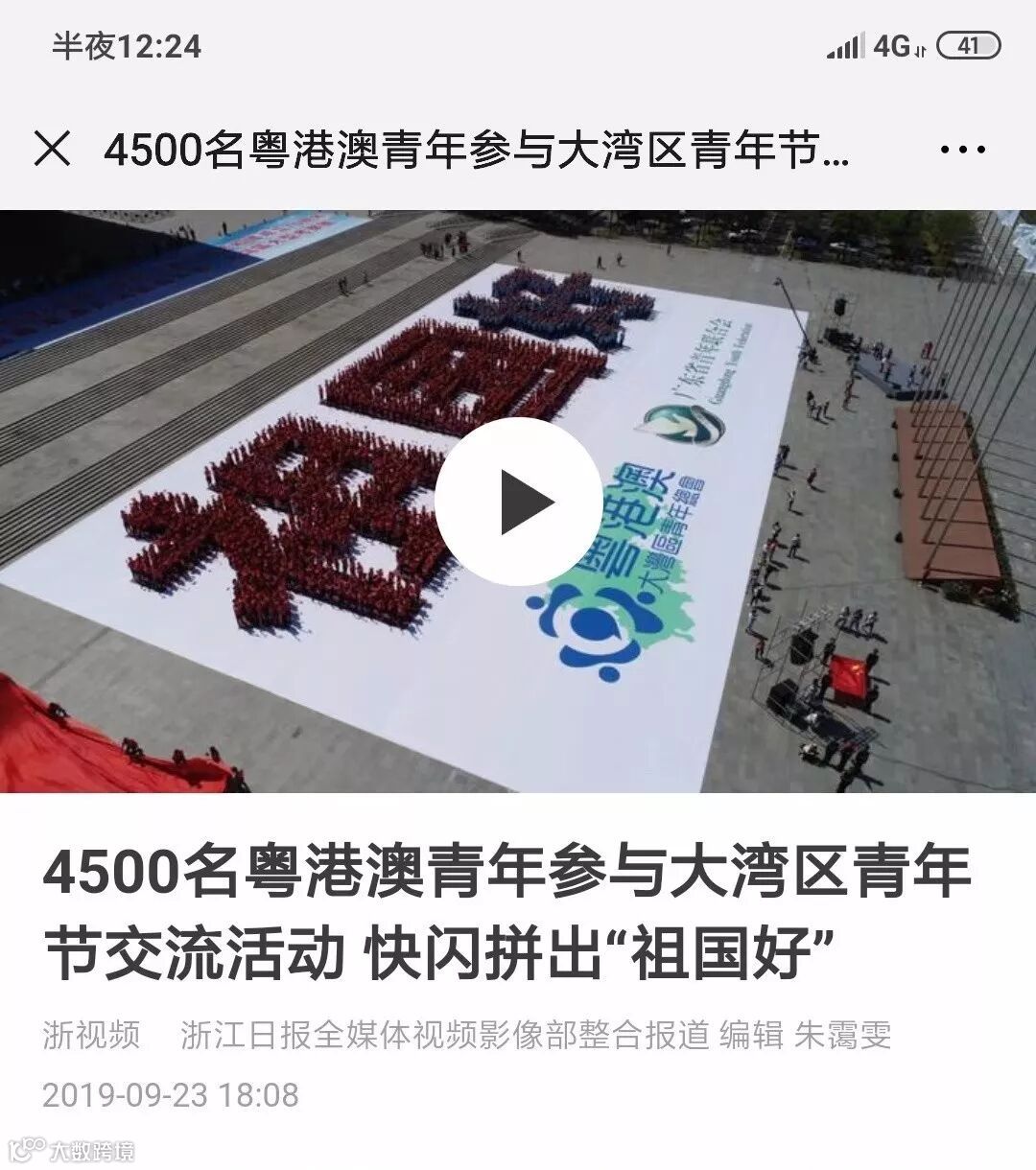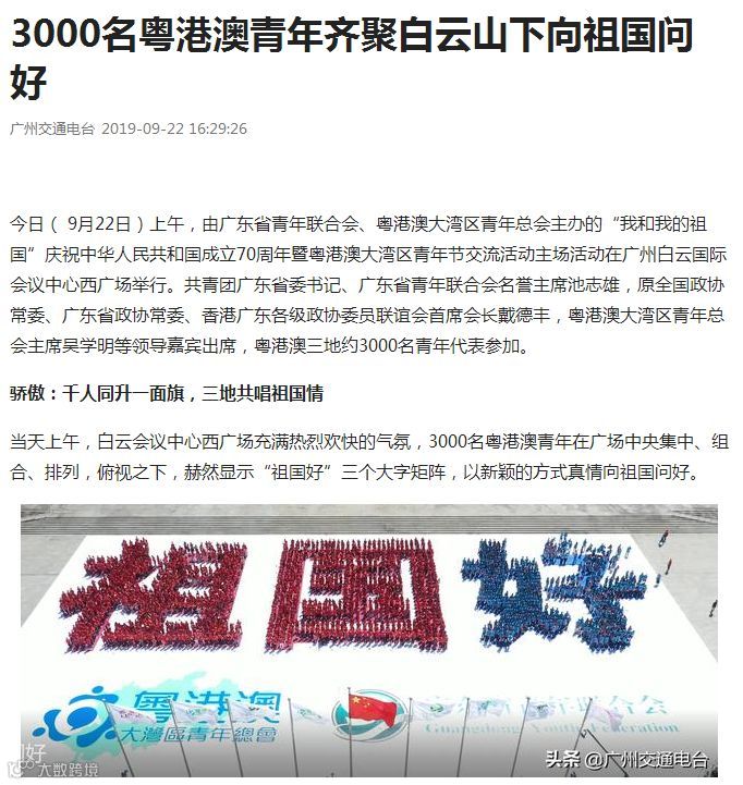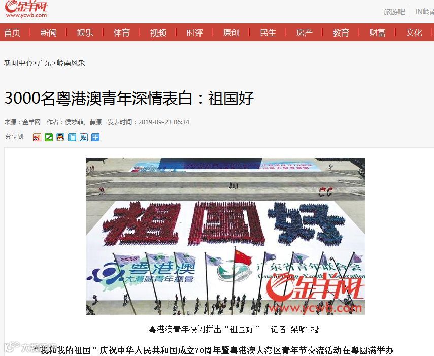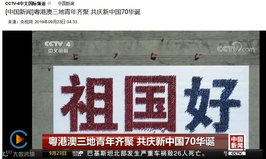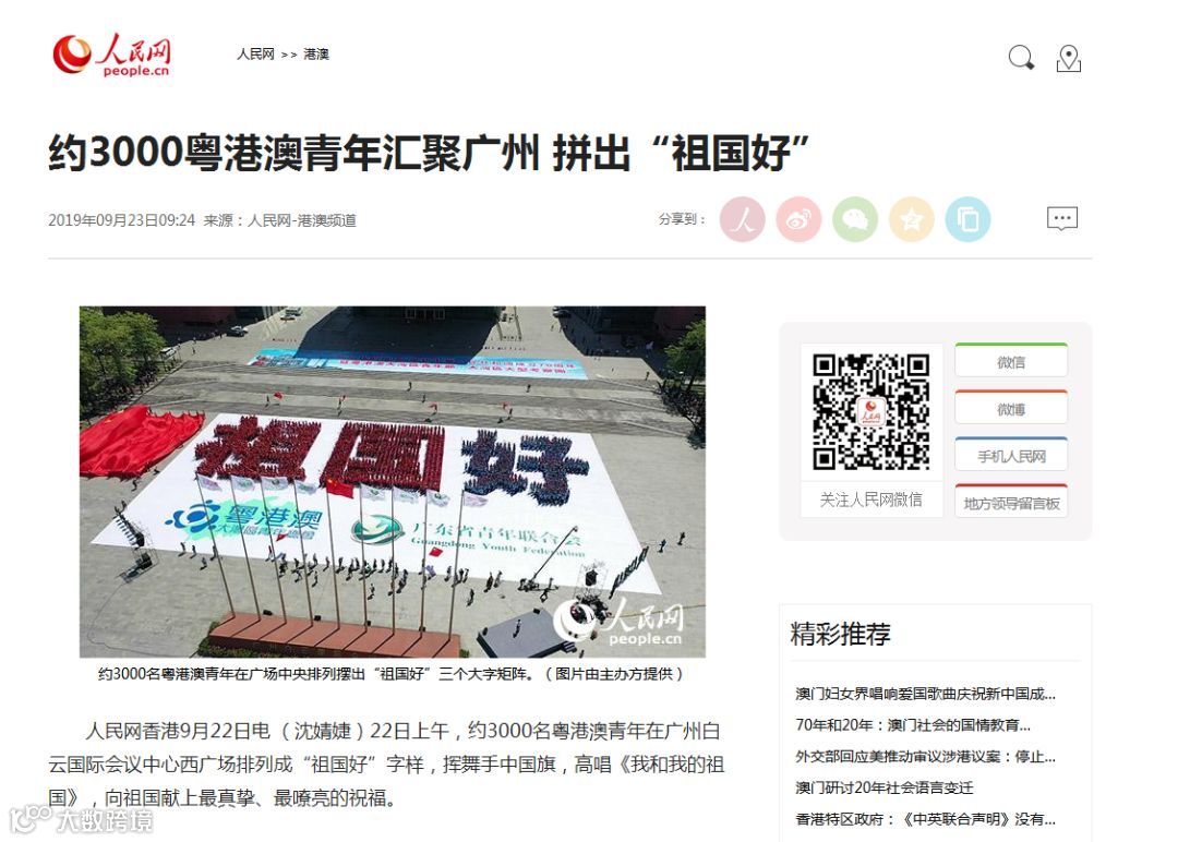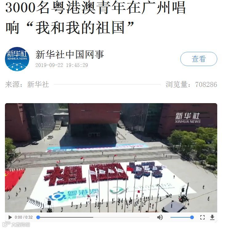 学习强国(2019年9月23日):三千名粤港澳青年齐唱“我和我的祖国”