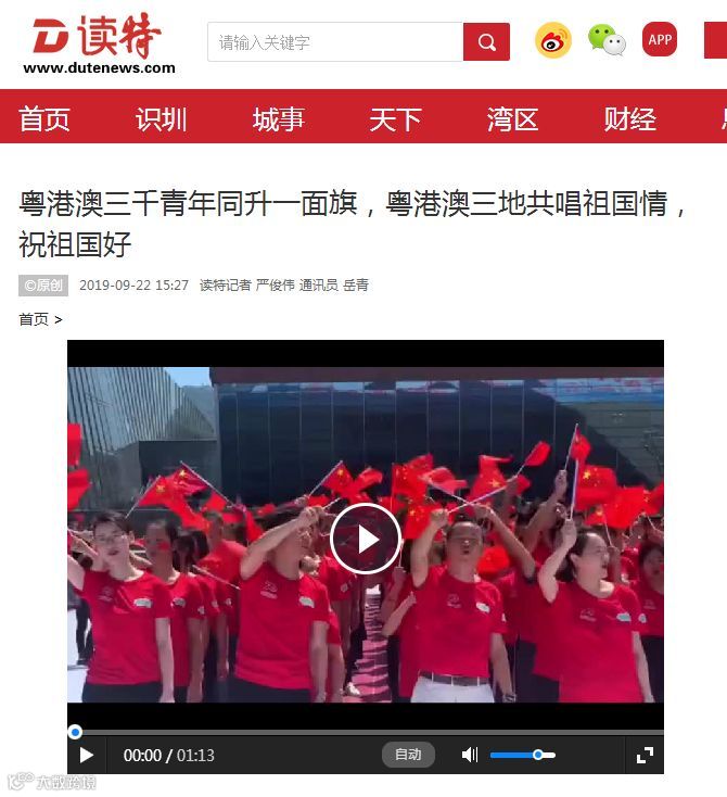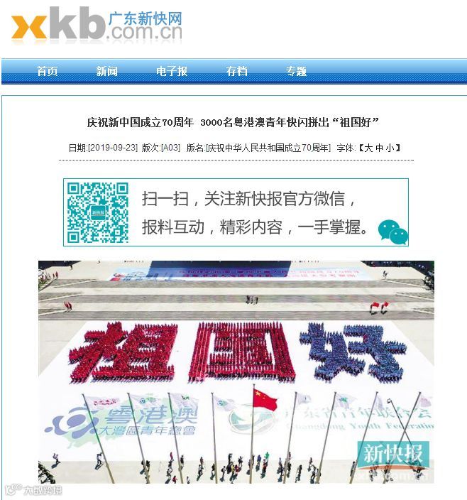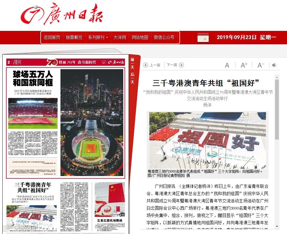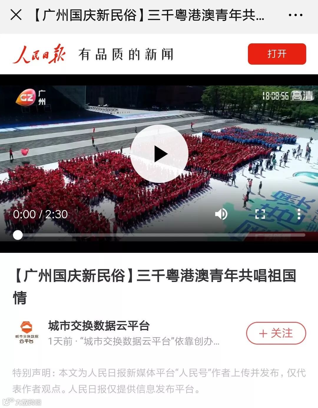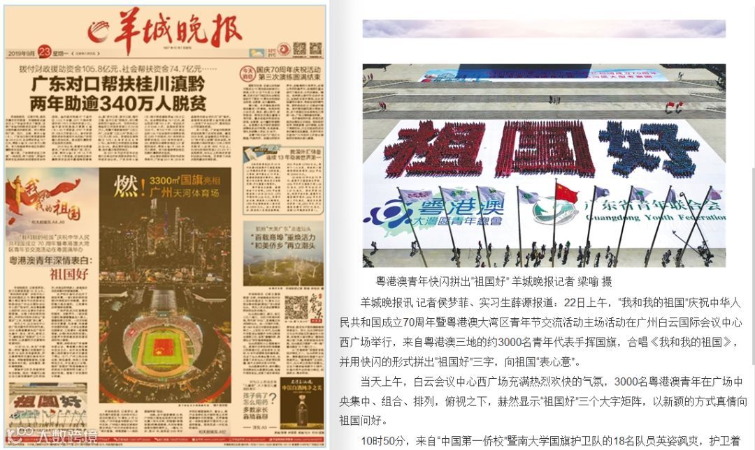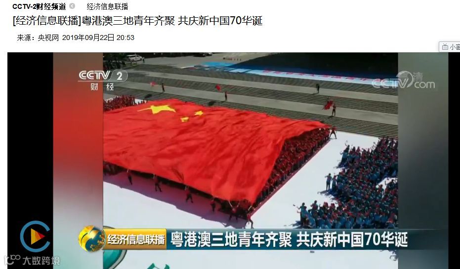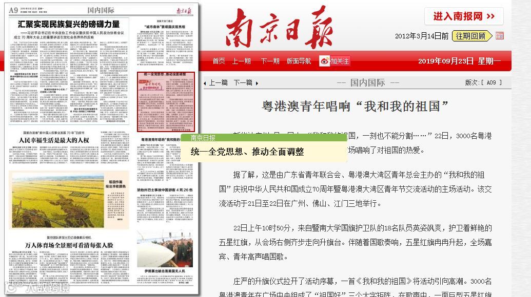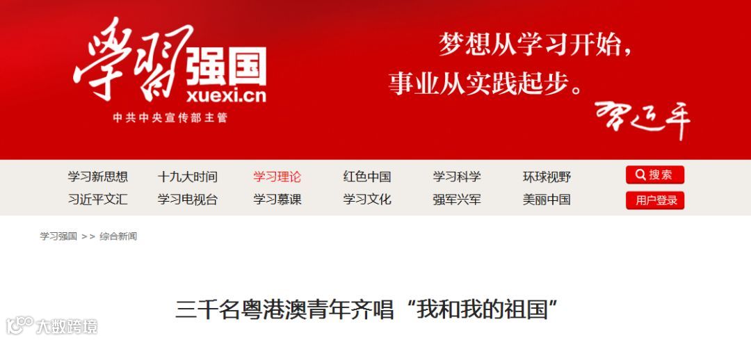 学习强国(2019年9月23日):三千名粤港澳青年齐唱“我和我的祖国”
