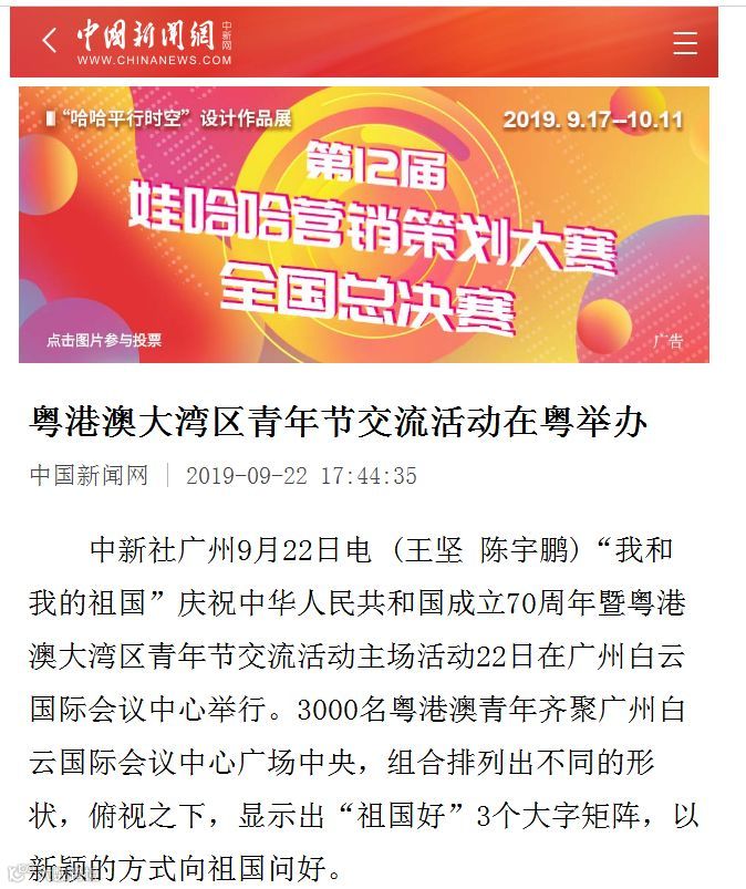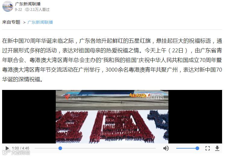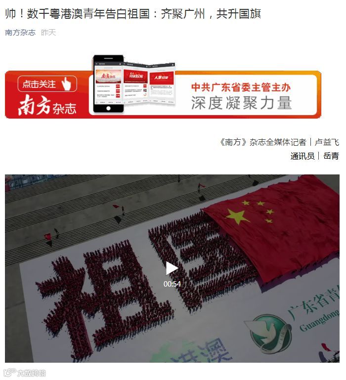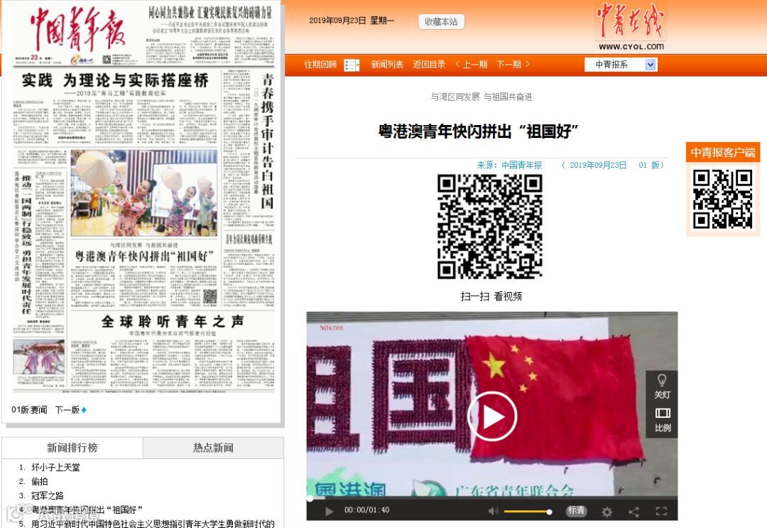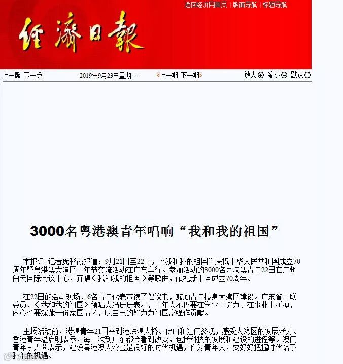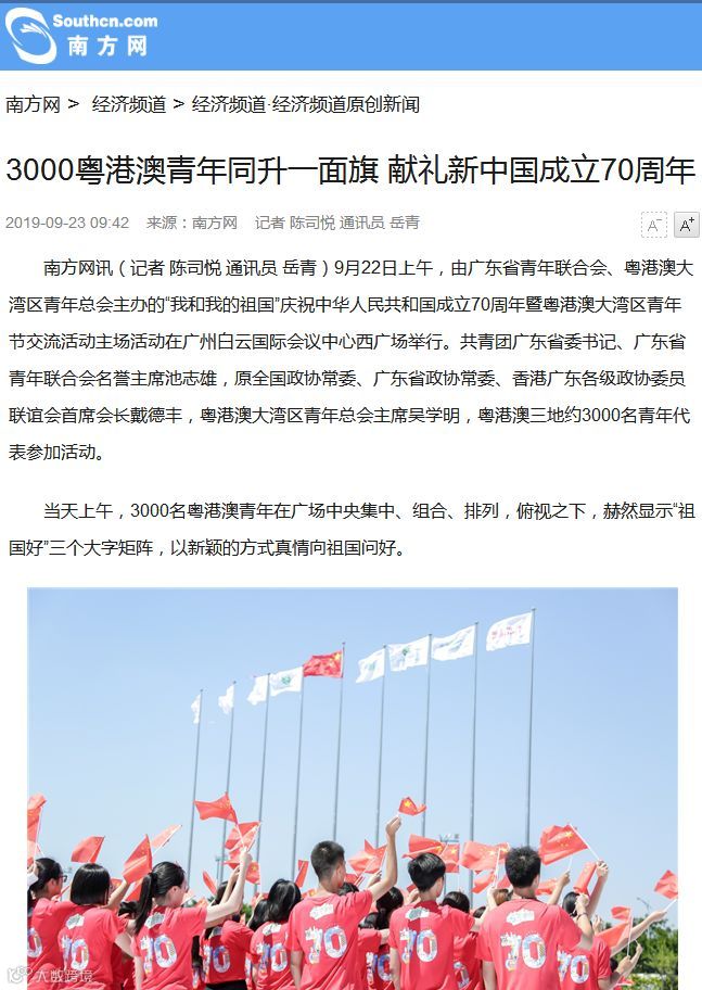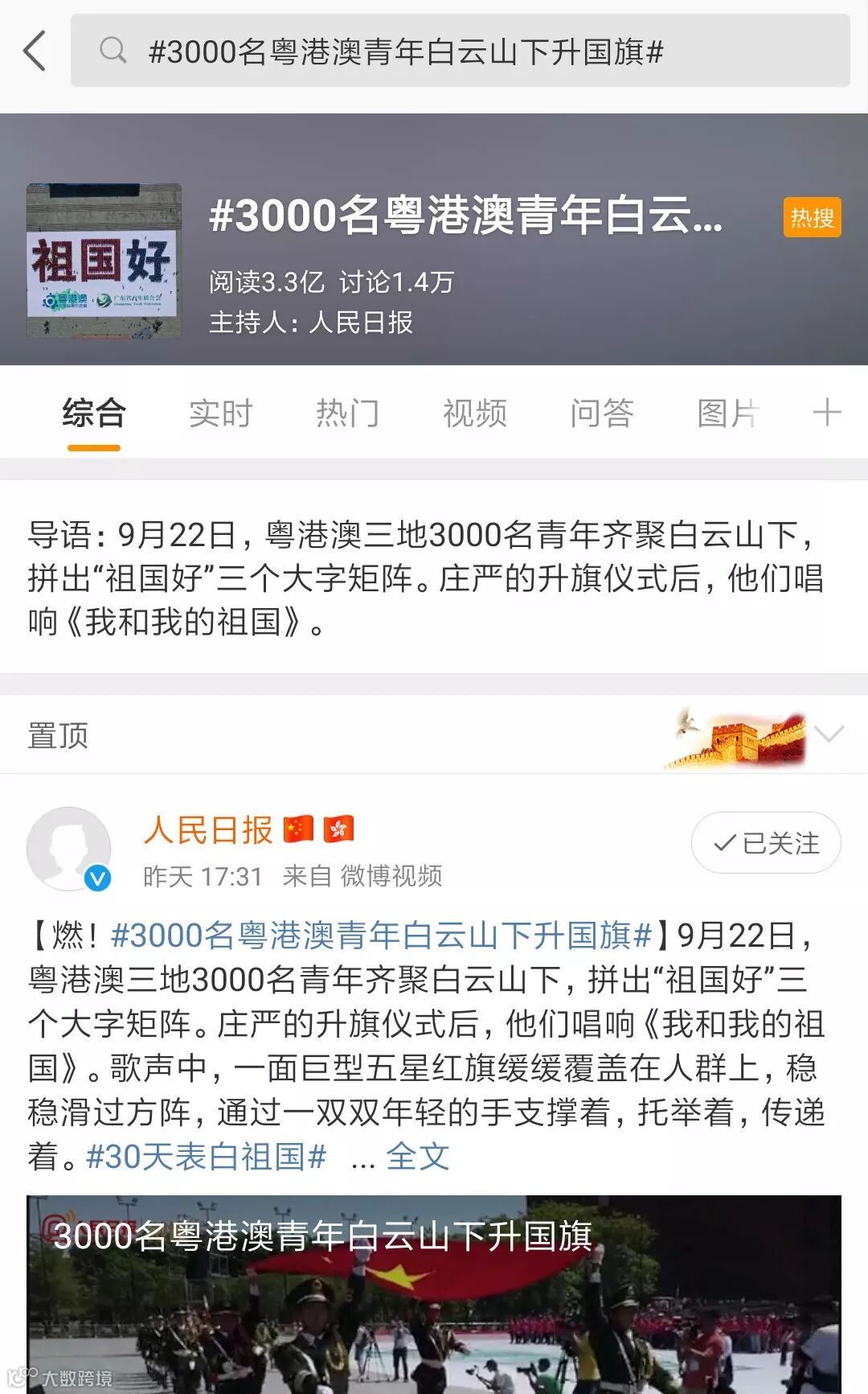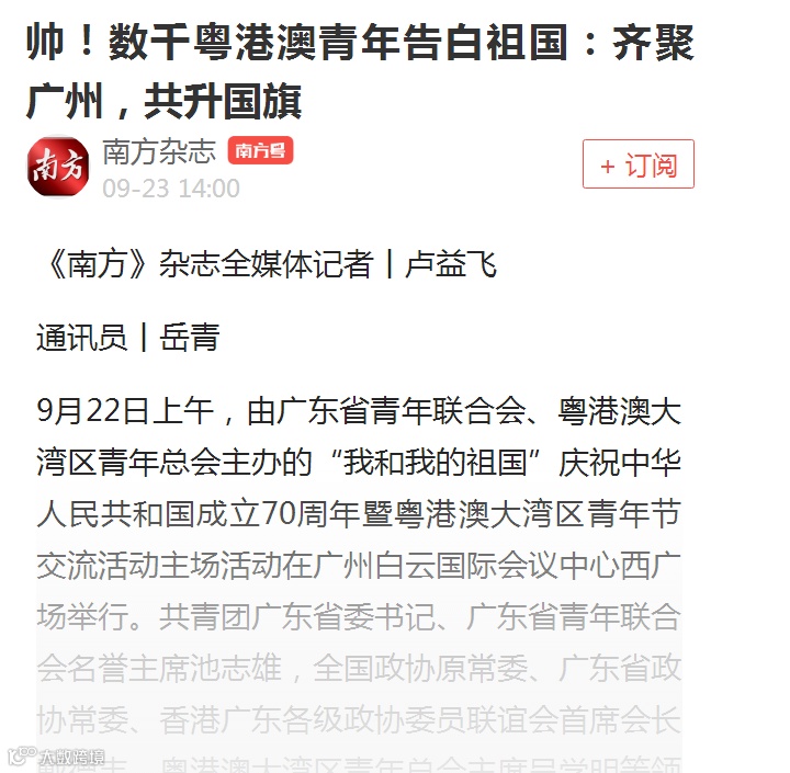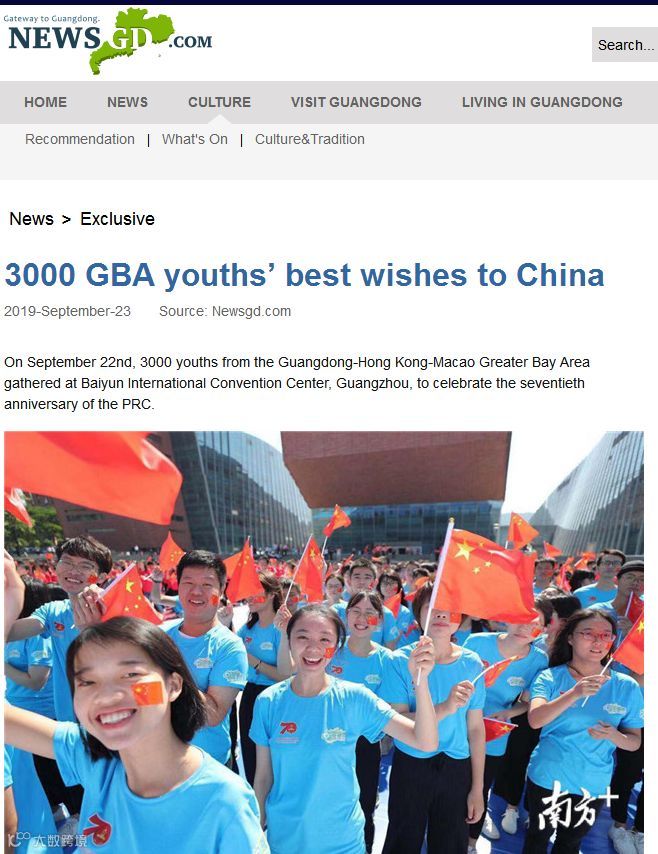 学习强国(2019年9月23日):三千名粤港澳青年齐唱“我和我的祖国”