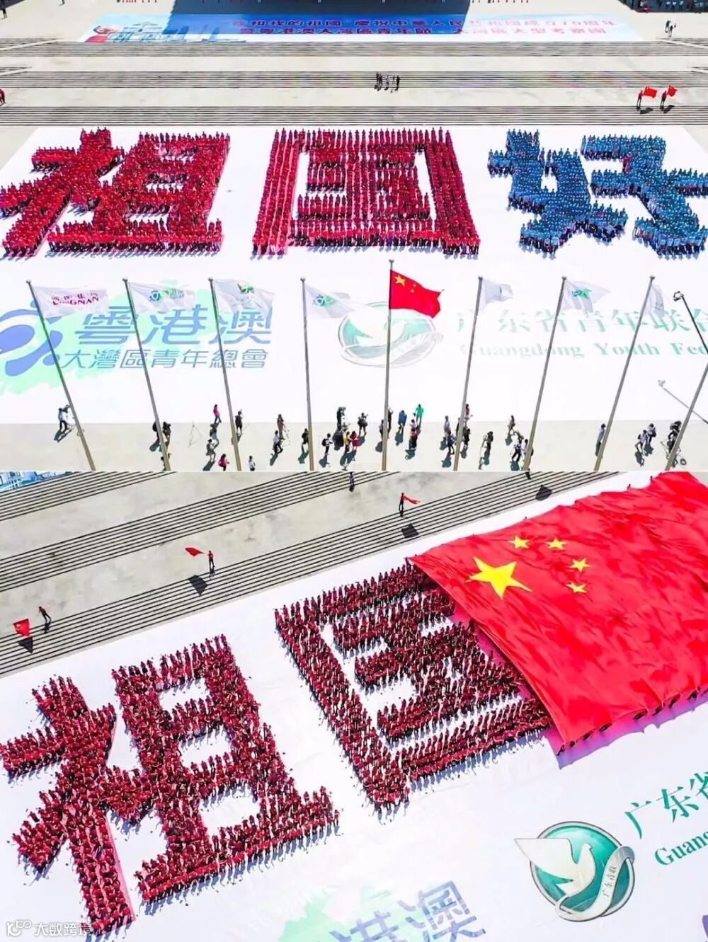 當天上午,白雲會議中心西廣場充滿熱烈歡快的氣氛,約3000名粵港澳青年在廣場中央集中、組合、排列,俯視之下,赫然顯示“祖國好”三個大字矩陣,以新穎的方式真情向祖國問好。