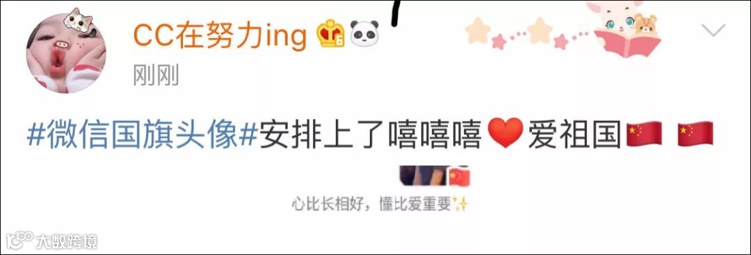 头像上突然多了一面飘扬的五星红旗。