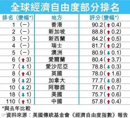 香港连续24年蝉联全球经济自由度榜首,远超中国内地,也远超美国