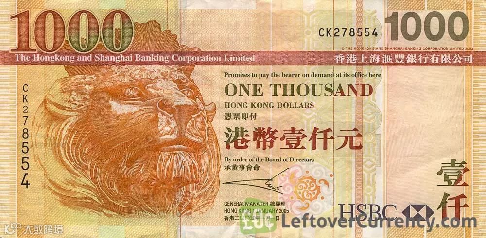 汇丰版本的1000港元,上面写着“凭票即付”,这里票指的是港币,付的是美元