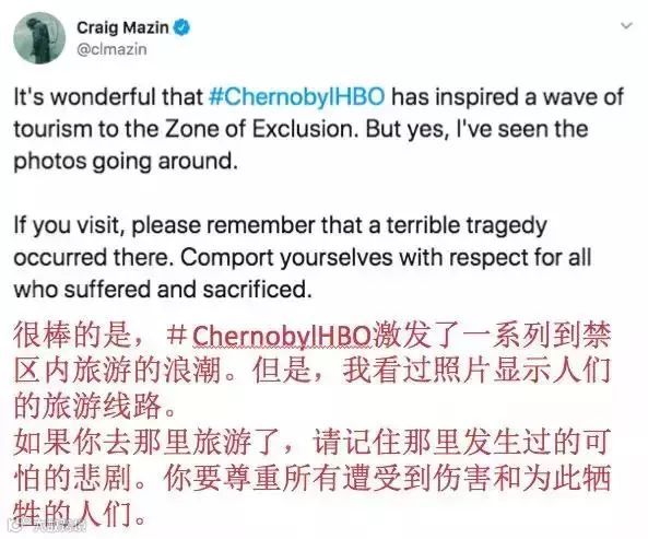 “看到《切尔诺贝利》的热播带来了大家前往隔离区参观的热潮,这很让人高兴。