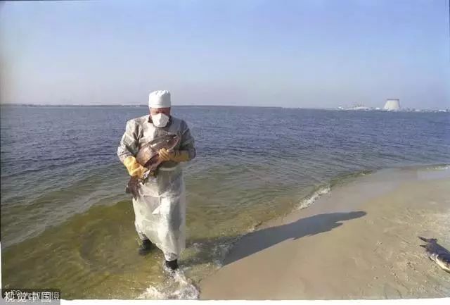 1986年,乌克兰切尔诺贝利的一名工人正在一个用于冷却核电站的人工湖中寻找死鱼。/来源视觉中国