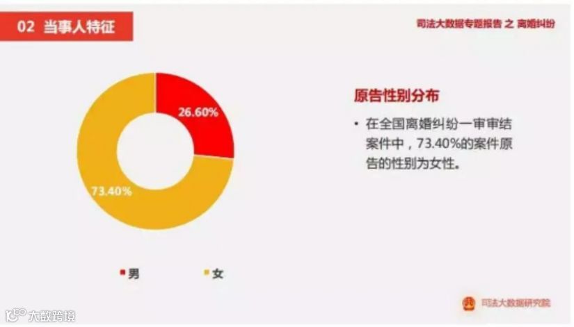 司法大数据研究院显示,73.4%的离婚案件,是由女性提出的。