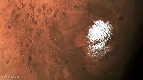 火星极冠,可见白色水冰+二氧化碳干冰!